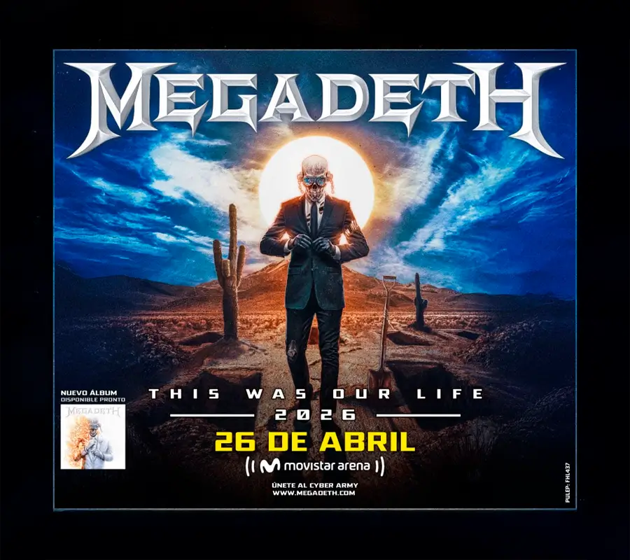 Megadeth llega a Bogotá con su gira mundial “This Was Our… Life Tour”, un recorrido que repasa el legado de una de las bandas más influyentes del thrash metal. Liderada por Dave Mustaine, la agrupación regresa a Colombia con un concierto centrado en las canciones que marcaron su carrera y definieron el sonido del metal durante más de tres décadas.